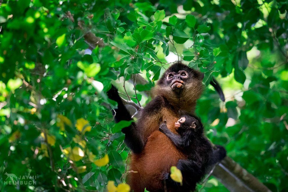 Spider monkeys are much more agile and acrobatic than howler monkeys. Their name refers to the long limbs that allow them to swing effortlessly through the trees. They live in groups of 30+ monkeys but spend much of their days alone through the canopies. Undisturbed rainforests are their favorite habitat.
